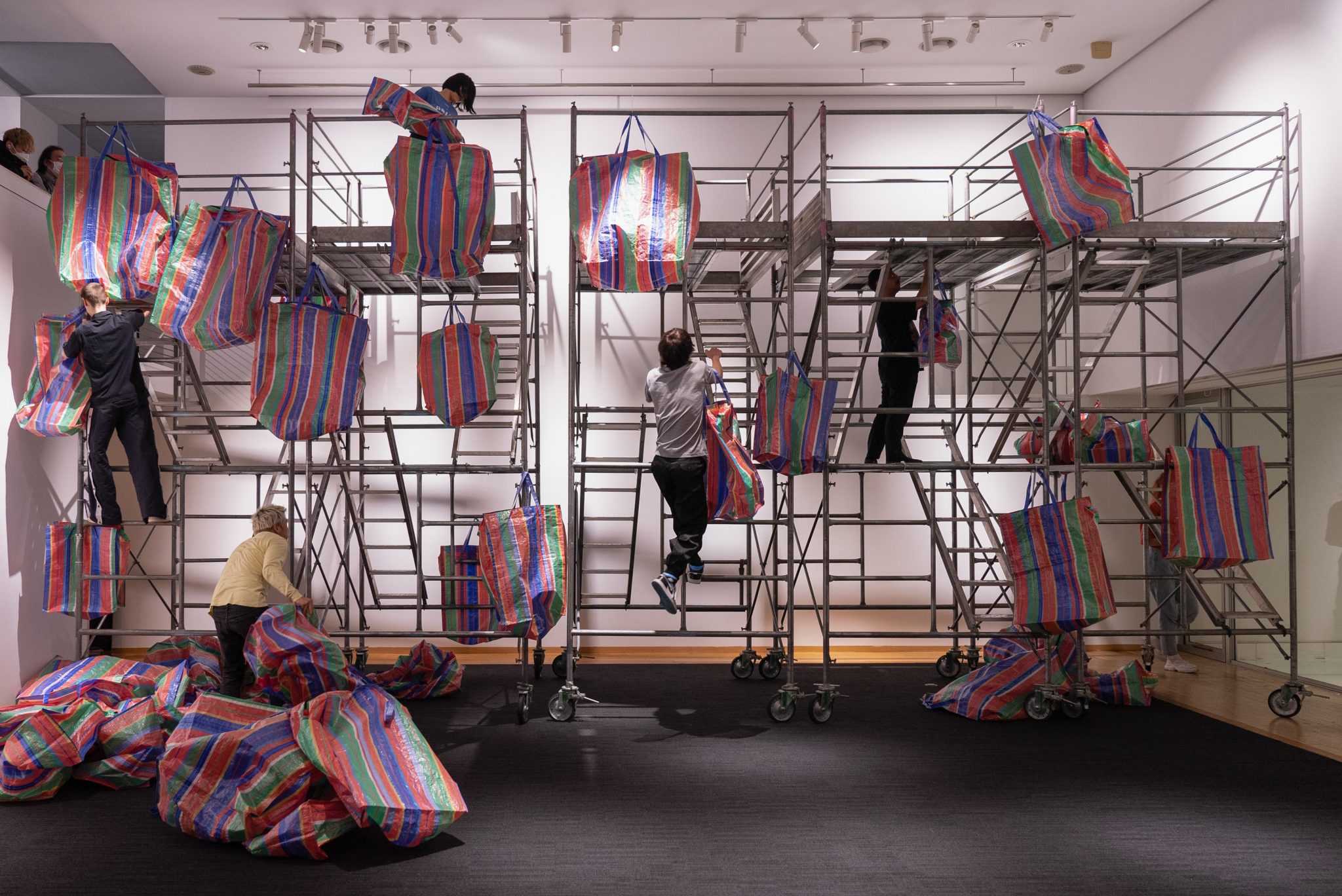 タイの少数民族出身という背景や、日常生活のインスピレーションから作品を制作する。社会の目に見えない構造を、鮮やかなインスタレーションやパフォーマンスによって表した作品を手がけている。出展作品は、住む場所を追われた際に家財や荷物を持ち運ぶバッグと、工事現場で使用される仮設足場でできている。自然災害や感染症、戦争、経済的問題などの要因によって、居場所や故郷となる場所を失った人々の存在を表しており、同時に誰しもが当事者になりえる事を暗示している。バッグは生活を再建するまでの一時的な心の拠り所としても見え、色鮮やかな明るさを放っている。