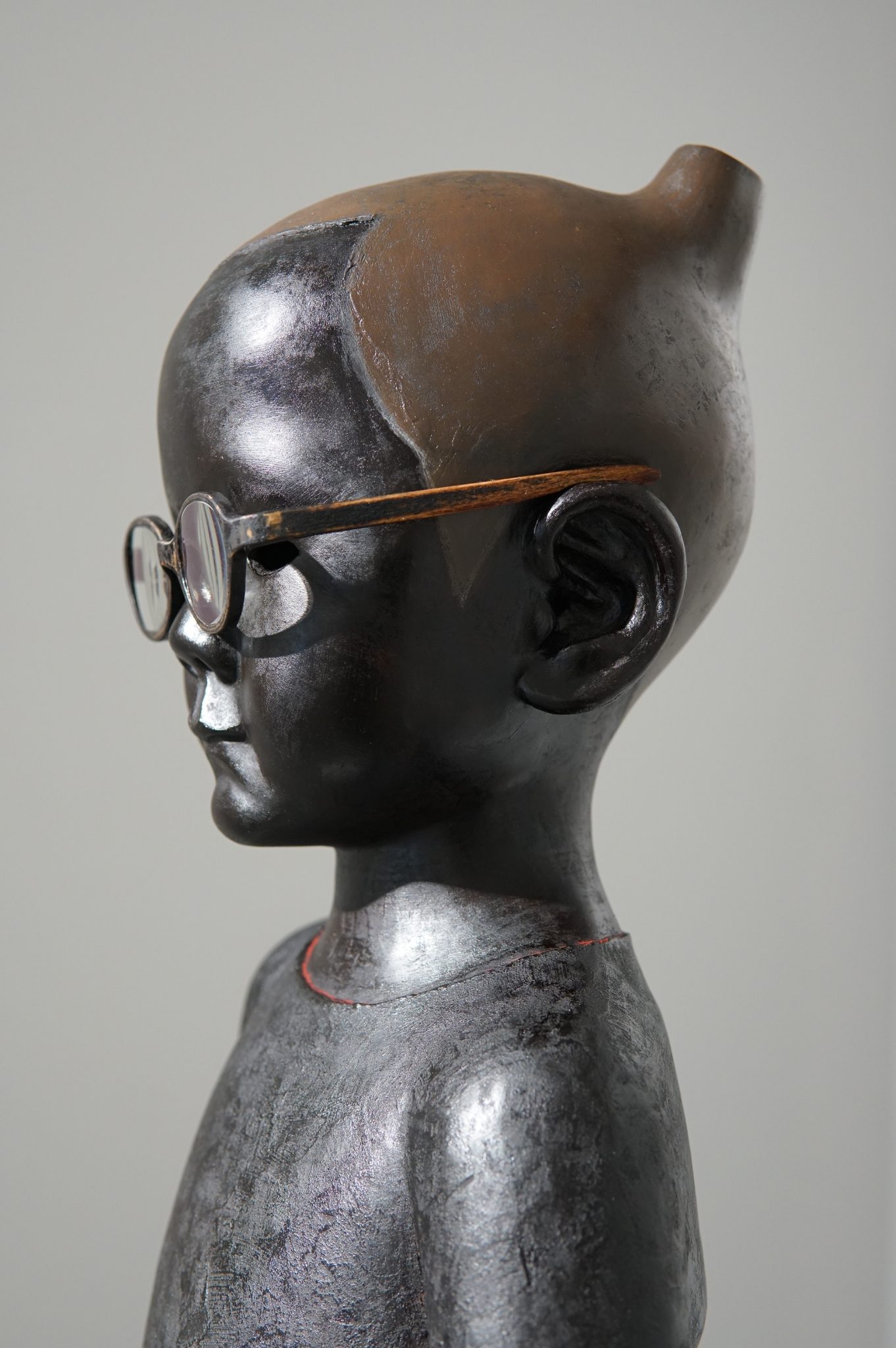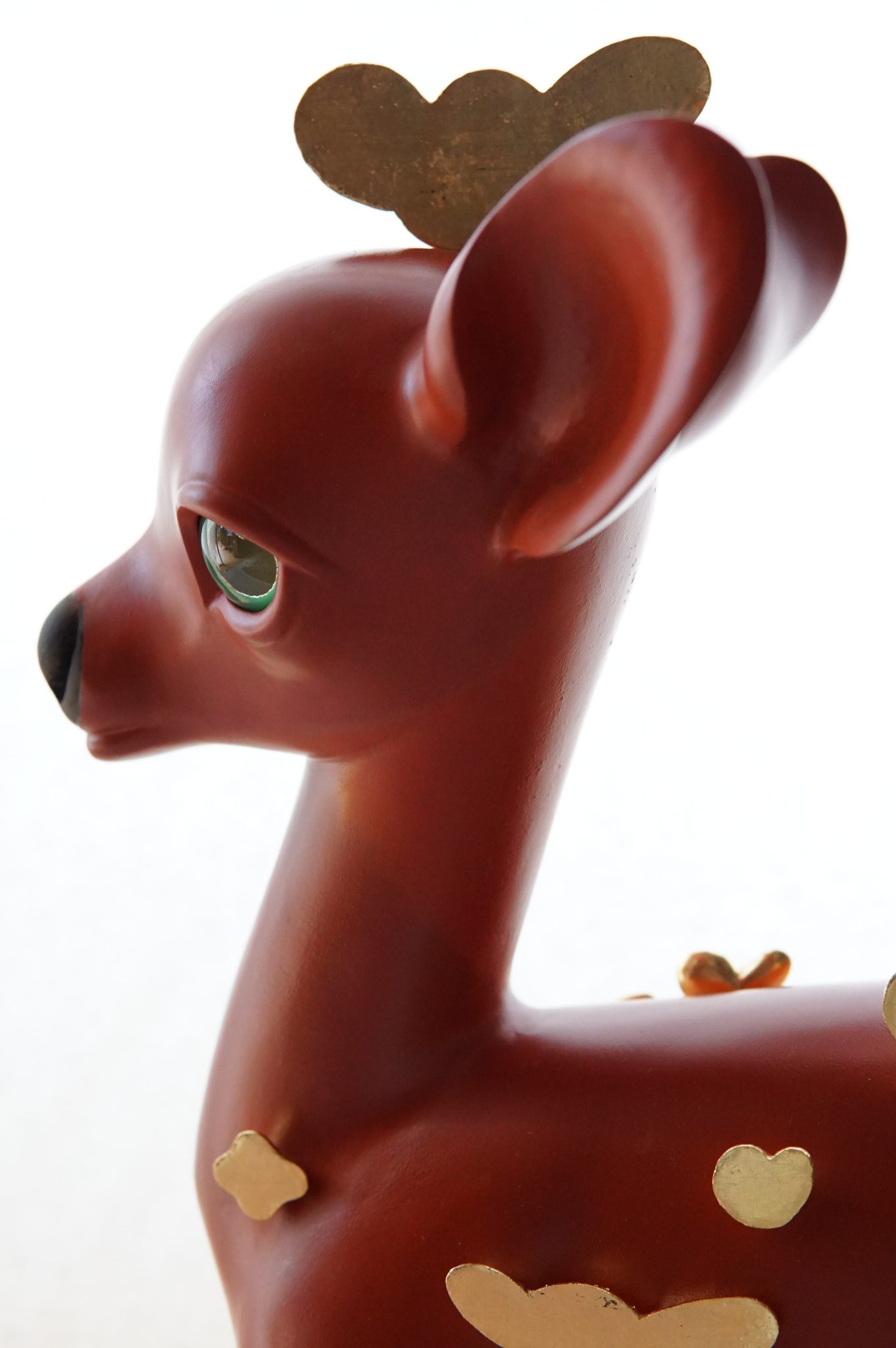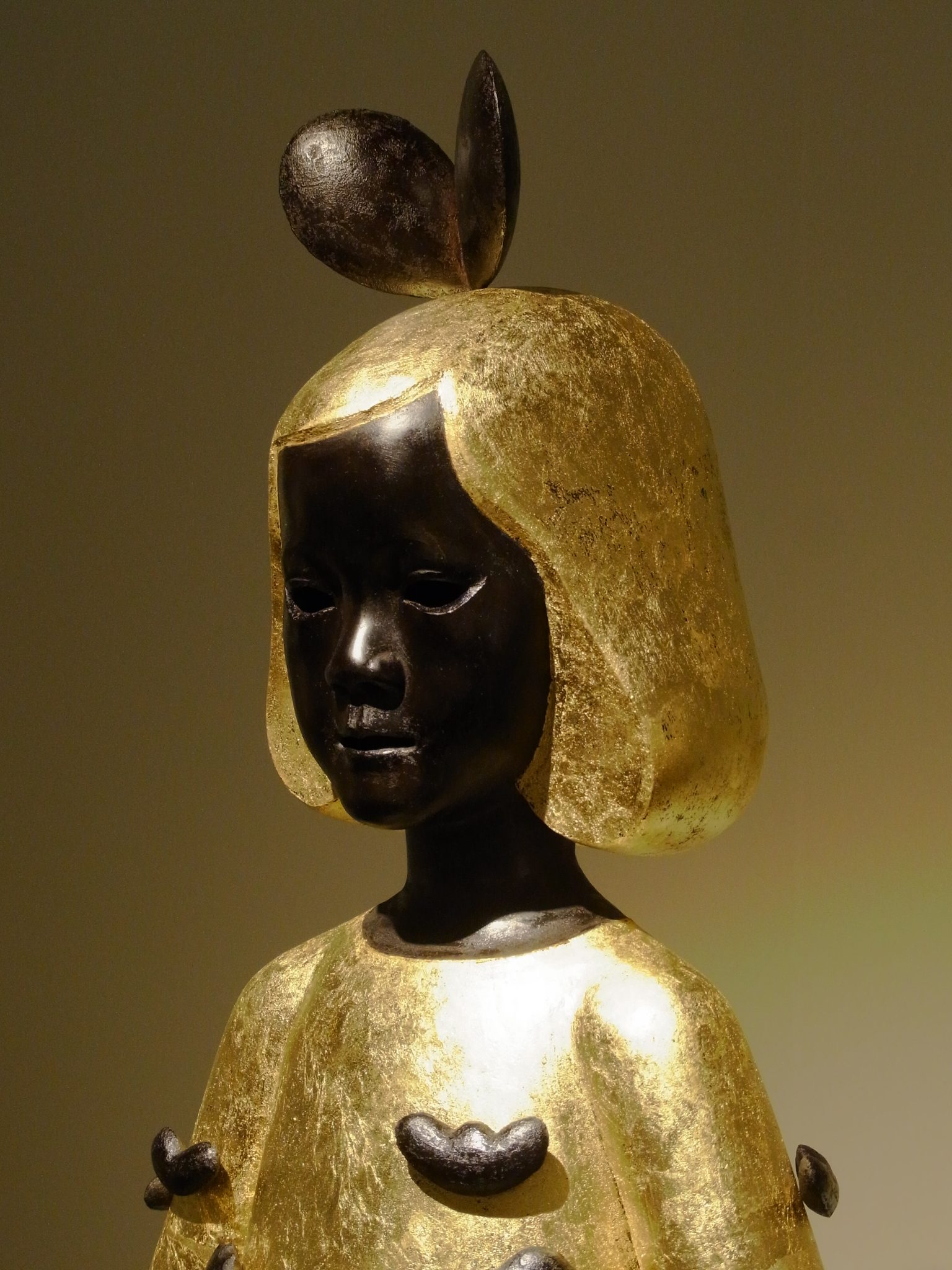 《へいわののりもの》というシリーズで、子鹿や子ども、犬や猫などの身近な存在をモチーフに、漆の乾漆技法を使った立体作品を制作している。近年は子鹿や子どもが多く見られ、小さな家族を連想される構成である。「へいわの」とあるように作風は、至って穏やかで、作品の周りには静かな時間が流れている。その静けさが伊能作品の最大の特徴であり、異なった作品であっても同一の時間が流れている。赤、黒の漆と金を使用した表面の仕上げであり、シンプルなものだ。西洋の人体彫刻とは明らかに異なる人体表現の特徴をもち、それは藤原時代の平安仏的な造形と言ってもいいものではないだろうか。