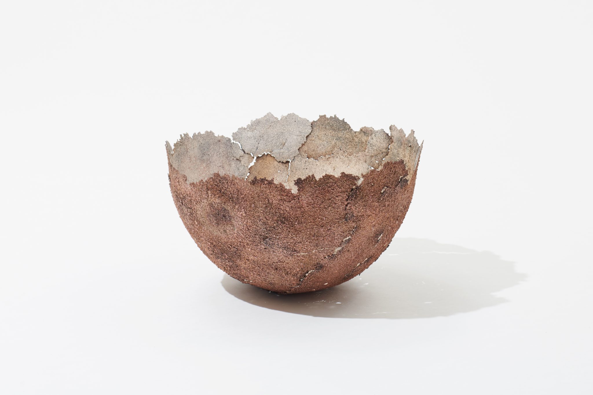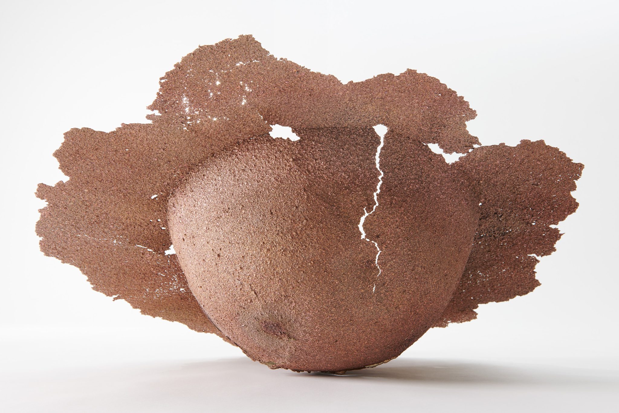 外山和洋 展示 01/4 《Biophilia; Ephemeral Bowl》2021年 銅 国立清州博物館所蔵 Photo: Ichikawa Shinichi[参考作品] 《Biophilia; Ephemeral Vase》2021年 左から銅(硫化)、銀(970)、銅 作家蔵 Photo: Ichikawa Shinichi[出展作品] 《Biophilia; Celestial Shaped Vessel》2022年 銅 作家蔵 Photo: Ichikawa Shinichi[参考作品] 《Biophilia; Ephemeral Vase》2021年 銀(970) 作家蔵 Photo: Ichikawa Shinichi[出展作品] 金属を溶解して、吹き付けたり、独特の鋳造を試みたりして、再構成していく外山の作品の特徴は、無機質な金属がどこか有機的な生命感を持つところにある。そういった金属の変化は「海が大気に変わり、肉体が土に還るような、エネルギーの循環や命の循環と変わらない現象」だと外山は言う。器の形態を大事にしつつ、新しい金属の表現を探究しており、使う素材は鉄やアルミニウム、銅、金などと幅広い。それぞれの特徴を生かしつつ、外山のつくりだす金属のテクスチャーがこれまでにない表面を生み出している。薄く、フラジャイルな金属表面による制作というところも魅力の一つだ。 展示 岩瀬エリア I-8|New An 詳しく見る