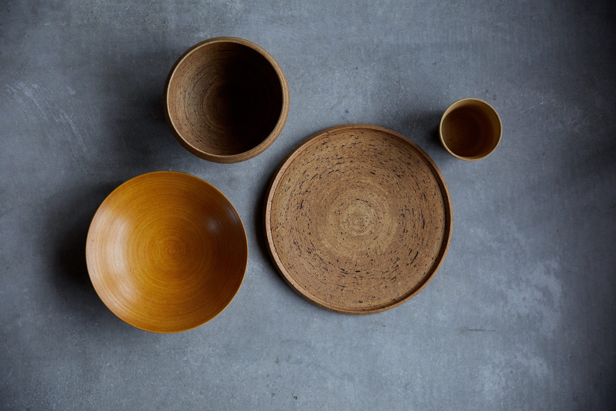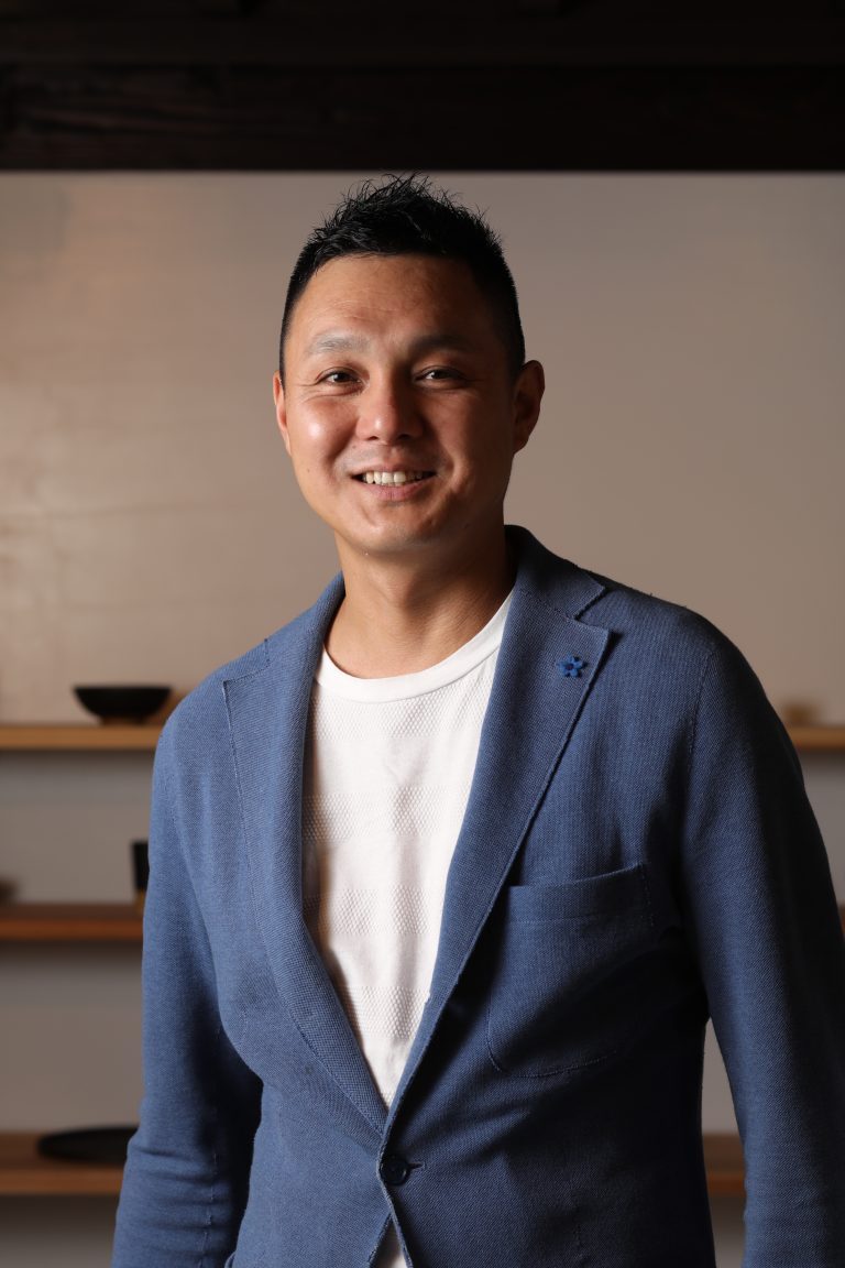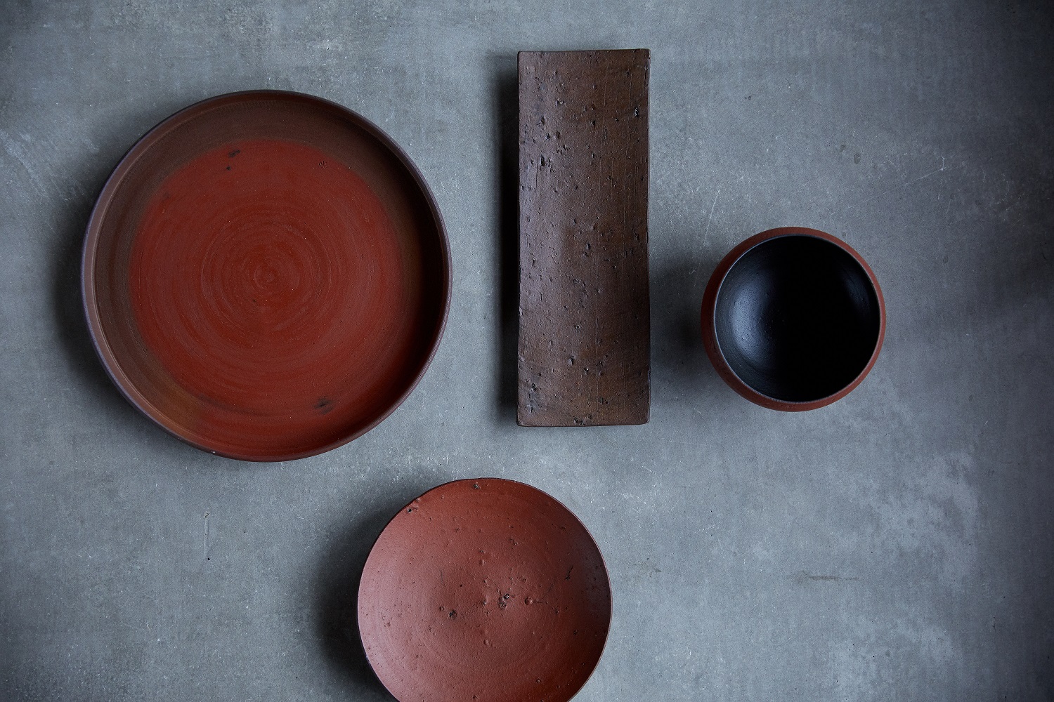 釋永は窯元の家で生まれ、大学で彫刻を学び、京都の陶工学校で陶芸を学んだ後、2006年から岩瀬で自らの工房を開く。立体造形をつくっていたが近年は器づくりに力を入れている。釋永は革や木やコルクのように見える焼物らしからぬ焼物をつくる。代表的な作品は、通常、器の裏にある高台を表にしたものである。高台をつくるように表面を削り取った彫刻的な仕事だ。また立体造形を制作していた際に編み出した釉薬で、レザーの質感に似た器もある。作品はそのほとんどがレストランで使われている。今回は釋永の彫刻的素養が表れた大ぶりの器を展示する。
