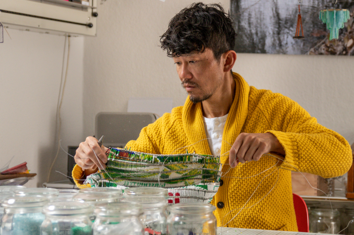 Shige Fujishiro holds a doctor’s degree from Hiroshima City University. During his studies, he undertook an exchange programme at the University of Applied Sciences in Hannover, Germany, which is a sister city of Hiroshima, and this experience led him to be based in Hanover. His works are made with glass beads and safety pins, and are meticulously hand-made, focusing on his own national identity and questions arising from his life. Since winning the Jutta-Cuny-Franz Award (2011) and the Corburg Prize for contemporary Glass (2014), his works has attracted attention as a contemporary art form that also combines elements of traditional handcrafts using ready-made glass beads. His works are exhibited mainly in glass museums in Germany and other European countries.