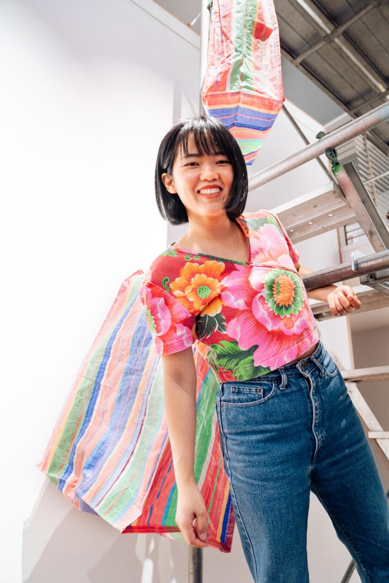 サリーナー・サッタポンさんは、これまでタイの少数民族出身という背景や、日常生活のインスピレーションから作品を制作してきました。社会の目に見えない構造を、鮮やかなインスタレーションやパフォーマンスによって表した作品を手がけ、出品作品は住む場所を追われた際に家財や荷物を持ち運ぶバッグと、工事現場で使用される仮設足場で出来ています。これは、自然災害や感染症、戦争、経済的問題などの要因によって、居場所や故郷となる場所を失った人々の存在を表しており、同時に誰しもが当事者になりえる事をも暗示しています。